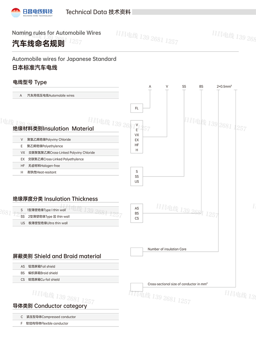日本標準汽車電線,汽車線命名規(guī)則