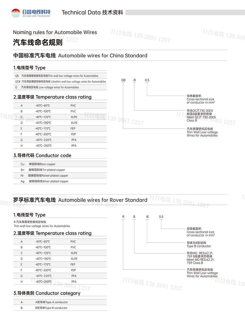 [導讀]: 中國標準汽車電線,汽車命名規(guī)則,電線型號、溫度登記、導體代碼